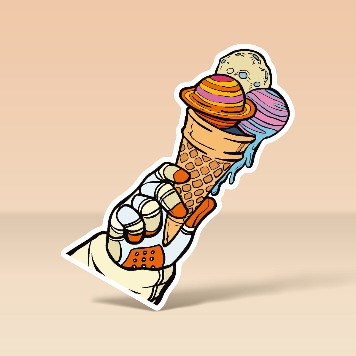ASTRONAUT HOLDING ICE CREAM CONE MADE OF PLANETS
