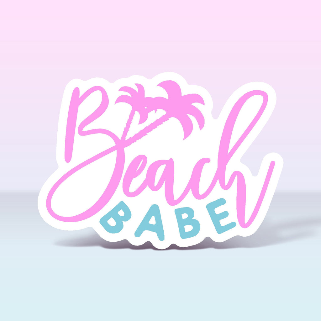 BEACH BABE WITH PALM TREE, PINK AND BLUE
