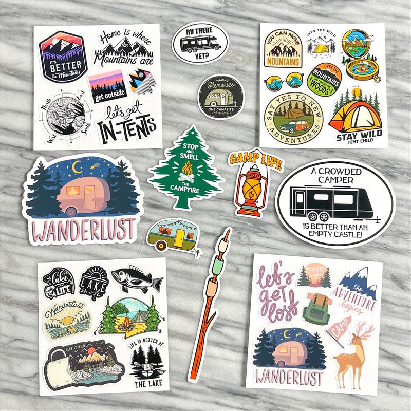 Add a splash of adventure to your gear with this fun Camping (RV & Woods) Sticker Bundle! Featuring 4 Sticker Packs and 8 vibrant vinyl stickers in three sizes—small, medium, and large—these durable decals are perfect for your RV, water bottles, laptops, or any surface that needs a touch of the great outdoors. Lightweight and weather-resistant, they bring playful camping vibes wherever you go. Stick ‘em on, hit the road, and let your wanderlust shine!